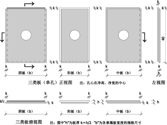 1、孔心:中心位置与板的“净宽”及“净高”的中心线对称,“孔”间距40cm。