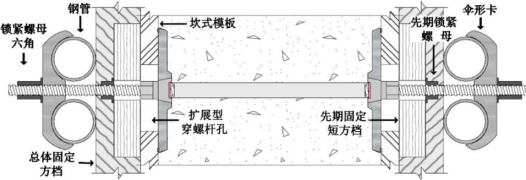 2、孔径:固定位穿螺杆孔宽度方向可能与模板内竖向钢筋,高度方向在矩形柱、“L”、“T”型