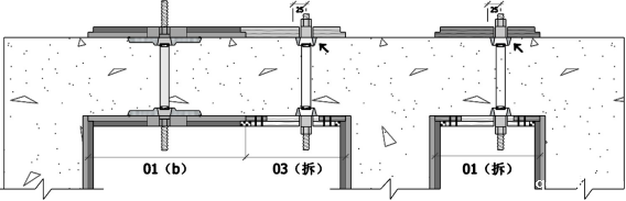 (3)单边拉结螺杆:仅只有“连”和“拆”的功能,用于楼板等无须“对拉”的部位。